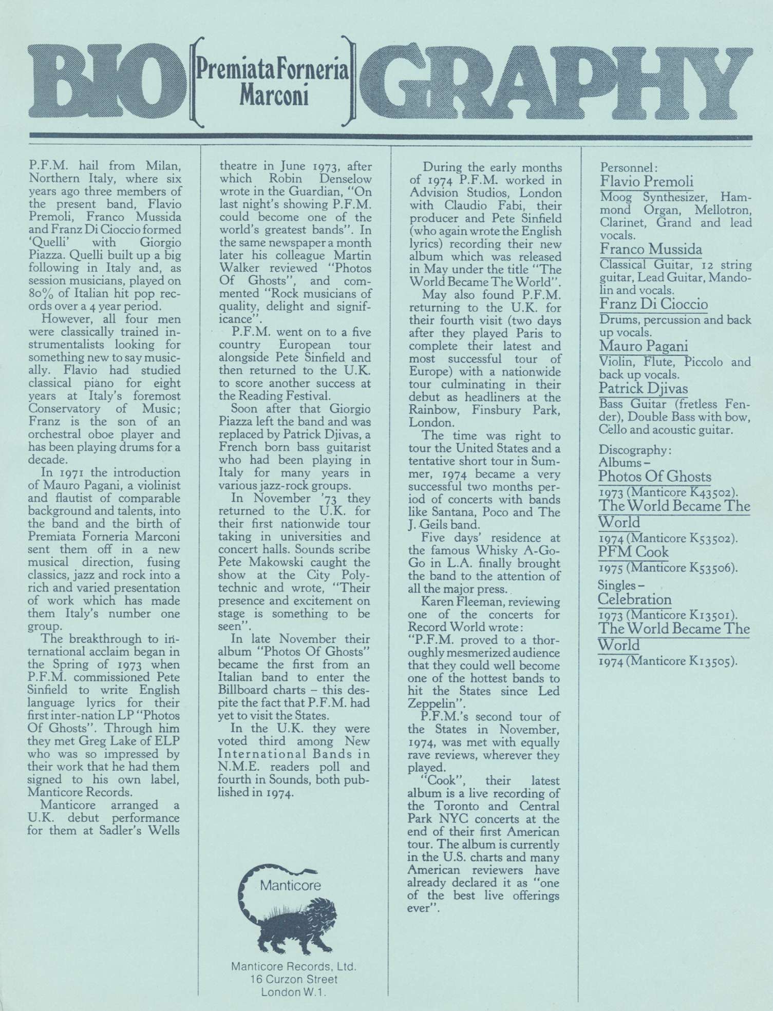 Tra i tanti artisti che in seguito aprirono i concerti italiani della Premiata Forneria